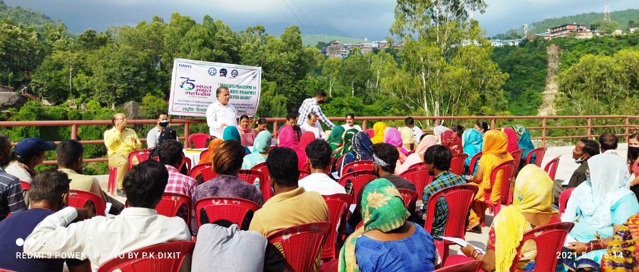 On the occasion of Bharat Amrit Mahotsav under the aegis of National Mission on Himalayan Studies; CSIR-Institute of Himalayan Bioresource Technology, Palampur conducted an awareness programme 04 August, 2021 in collaboration with Nagar-Panchayat Baijnath-Paprola. The occasion was graced by the President, Vice-President, all the councillors, and Secretary-Nagar Panchat Baijnath-Paprola. The awareness programme was conducted to popularize the organic waste management at the source so that it doesn’t reach the dumping site of Nagar Panchayat. The participants of the awareness programme included sanitation workers, sanitation friends (स्वच्छता मित्र) and all the team of Nagar Panchayat. The participants were detailed with proper kitchen waste management and efficient farm yard manuring, a questionnaire on waste generation and current practices of waste management was also circulated and feedback was collected.